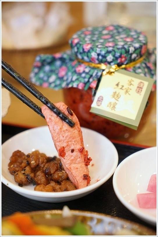 ▼尤其客家紅麴釀更是特別,酒香濃郁,豆皮吸附紅麴醬料精華後吃起來味道非常厚實,整個味蕾都甦醒啦!喜愛的朋友也可以直接跟店家購買客家紅麴釀回家搭配享用唷!