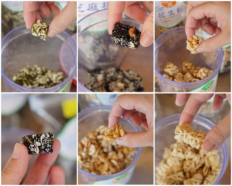 ▼其中像是材料就是選用台灣9號花生、美國加州杏仁、昆明南瓜子、泰國或印度的優質黑芝麻等,再搭配自製麥芽糖下去拌炒而成,吃起來甜度不會過高過膩,而且還能吃到食材的天然風味,吃起來不黏牙又涮嘴,很受遊客歡迎!像是腰果酥、首烏養生酥都是比較少見的口味,酥鬆脆口又養生,很多朋友吃過覺得好吃都會帶回去送給長輩一同享用!
