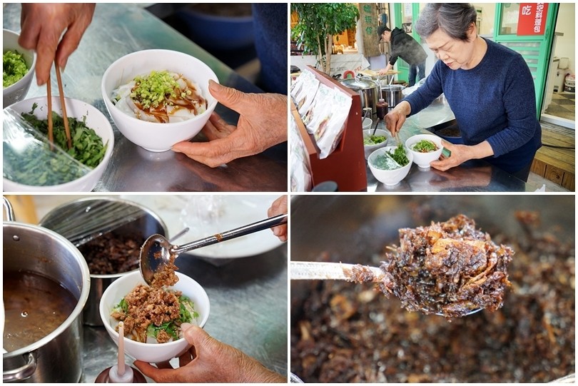 ▼看著她們手切粄條,有種療癒的感覺XD她們家的粄條吃起來軟而不爛,帶點微微米香與軟Q的口感,搭配自製配料更是超級美味!