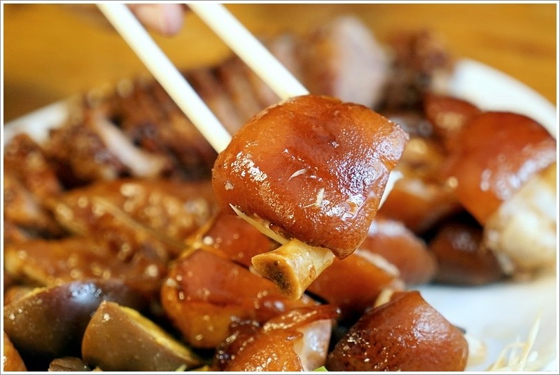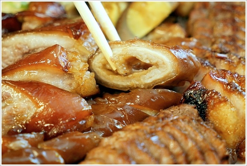▼他們家的滷味都是採用在地的黑毛豬,不僅重量夠、品質好,而且都是手工拔毛,並仔細刮淨每一寸豬皮,不僅費時費工而且也沒有豬癬味,難怪會變成店內的明星商品啊!而且他們對於食材也非常講究,如果當天沒有買到適合的肉品,當天就會休息不營業,老闆對食材的重視可見一斑!滷味也都是老闆現點現切,光看就讓人受不了啦!