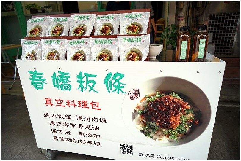 ▼「春嬌粄條」乍看之下好像是一間很新的店面,但其實他們源自於北埔劉家小館老店的春嬌阿嬤,特別將口味傳承下來,再改成能夠宅配的真空料理包!也是希望在不要有其他添加物的狀況下,讓大家都能品嘗到道地的客家美味!不過為了讓大家能夠在購買前品嚐到實際口味,在這裡也設立個一個小店面,讓大家可以直接單點乾拌粄條來吃!不過這裡只有週末才有開,平日想吃到春嬌粄條的朋友可得要上網預訂宅配囉!