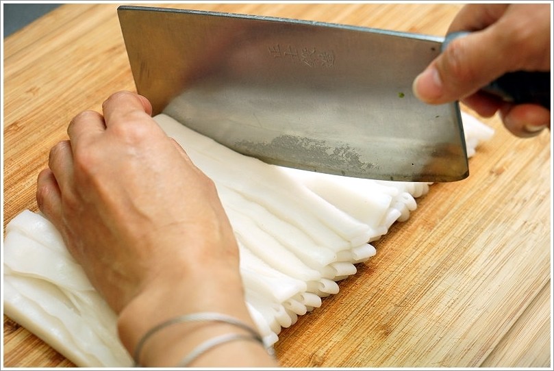 ▼切好的粄條粗細差不多,帶點柔軟微Q的口感,讓人一吃就愛上!