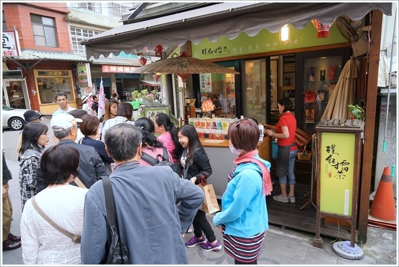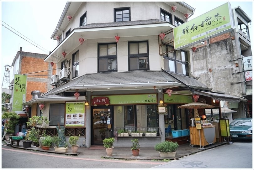 ▼「璞鈺擂茶」就位於北埔廟前街的三角窗,清新綠的招牌非常顯眼好找!