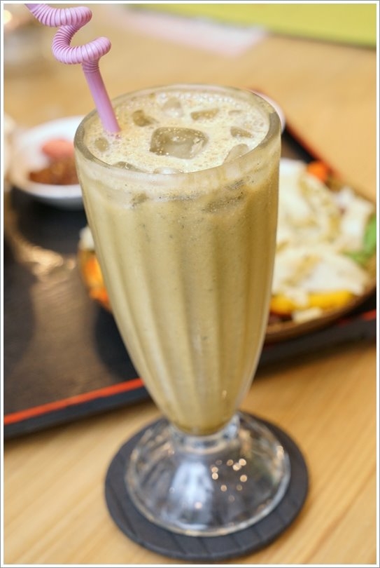 ▼養生綠茶擂茶,也就是道地的擂茶口味,喝起來不僅有淡雅的綠茶香氣,還有各式各樣的五穀雜糧,喝得到纖維與顆粒感,微甜的口味很溫順,很適合第一次來訪的朋友!