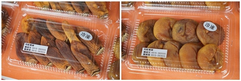 ▼他們家的柿餅沒有用色素及二氧化硫去燻化,所以呈現的是自然的顏色!再搭配龍眼木去燻化、冷烘而成,不僅皮很薄,而且柔軟度夠,吃起來不會硬梆梆!當然老闆也會提供給大家試吃,三種柿餅口感香氣更異,大家可以依照個人喜愛去挑選購買!