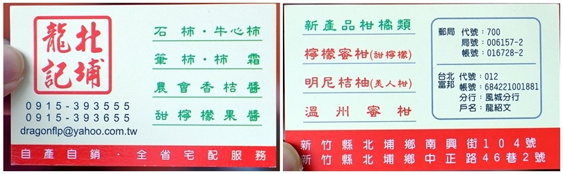 ▼名片,有需要的朋友都可以來北埔找他們購買,或是宅配到家也沒問題!