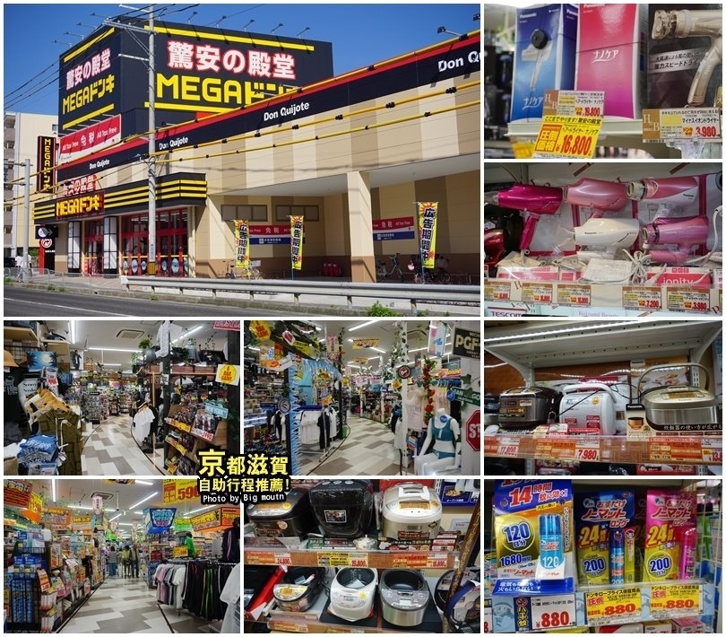 ▼唐吉軻德驚安殿堂也是超好逛超好買,像上次大口去滋賀店看到吹風機竟然無敵便宜,是所有逛過的店舖裡頭算是數一數二便宜的,原來是因為剛開幕有做特價活動,可惜大口已經買了一台,不然好想再買一台說!另外還有每次必買的防蚊液、防蚊掛片、咖哩、包包等,甚至日用品、電器有時候也會在這裡購買,這時候就可以拿出樂天卡來刷最划算啦!