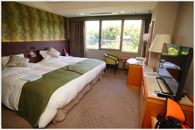 ▼另外還有從窗戶就可以看見熊本城的飯店也是網路上訂購的,不僅舒適又寬敞,而且離熊本城超近,可惜熊本城還沒整修好,不然就更美了!