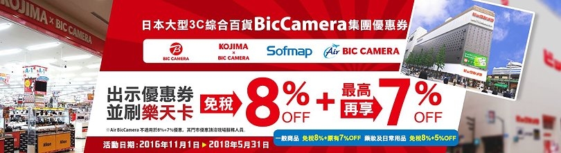 ▼來到日本,電器用品也是不少人會專程扛回台灣的首選,像是Panasonic吹風機、戴森吹風機、水波爐、熱壓三明治機等,尤其是台灣人最愛去的Bic Camera,每次逛得都超過癮,也是遊日必去的點之一!不過去Bic Camera之前大家都習慣會先上網找折價券或是下載coupon券,現在只要出示優惠券並刷樂天卡,就能享有最高8%+7%的優惠,真的非常方便呢!(相關說明請點我)