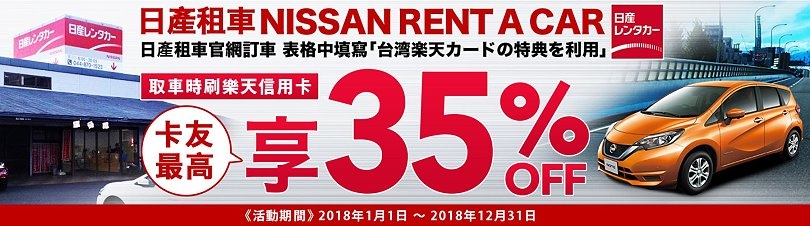 ▼另外像是日產租車也是,只要在租車表格中填寫特定字樣,取車時刷樂天信用卡就能享有最高35% off,也是可以省下不少旅費!!