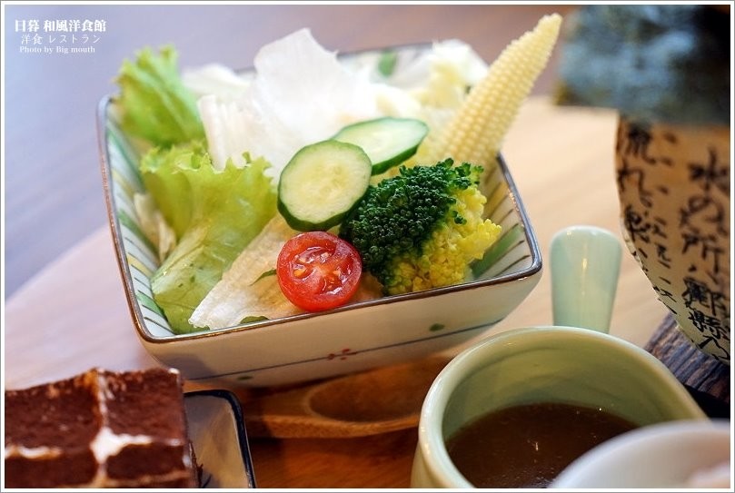 ▼另外還有泡菜、煮物、茶碗蒸、沙拉、濃湯、甜點等,搭配日式與洋風的盤器相當討喜!
