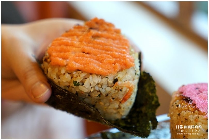 ▼粒粒分明的米飯單吃就非常香,搭配上頭的配料、海苔更是提味不少,吃完一顆我們就有點飽足感啦!