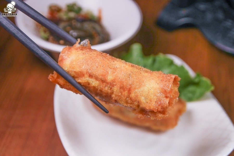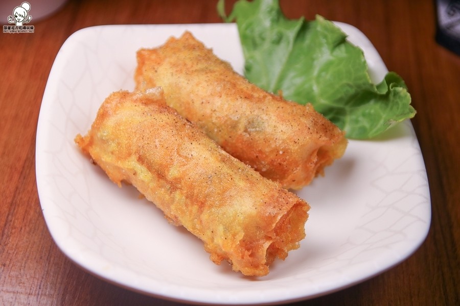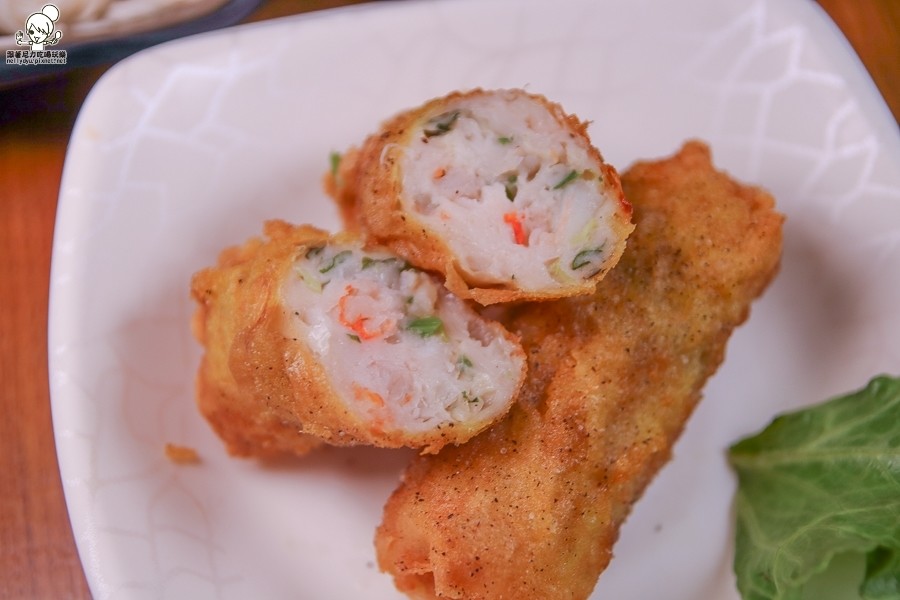 使用新鮮蝦子自家料理手工製作的琥珀蝦卷,很酥脆可口
