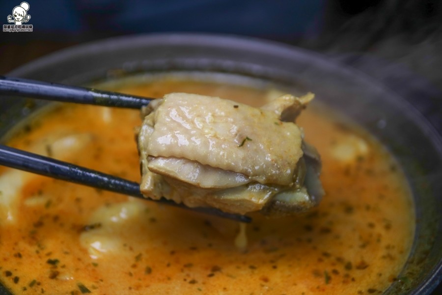 土雞會吸附南洋風味湯頭,咬下會有椰奶香氣與雞肉本身甜味