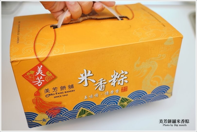 ▼「美芳餅舖」特製的肉粽禮盒,上頭還有附提把,看起來既傳統又帶點文青風的質感,不管是送禮或是自己享用都很不錯!