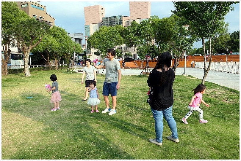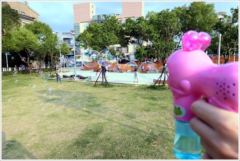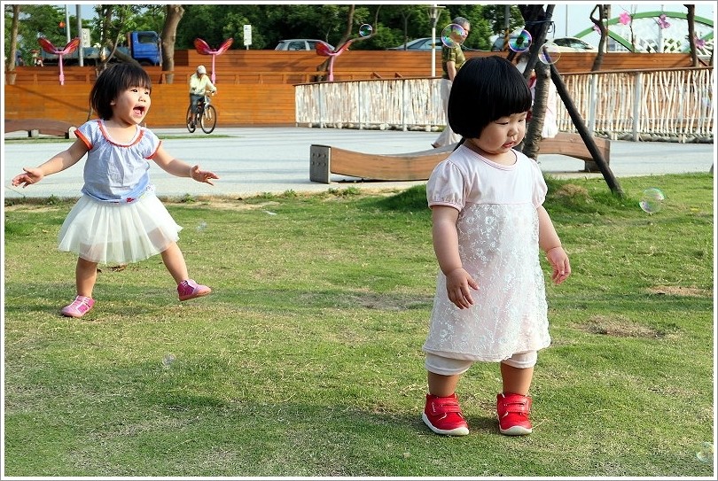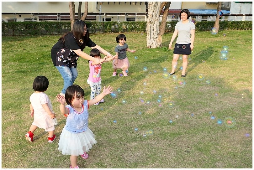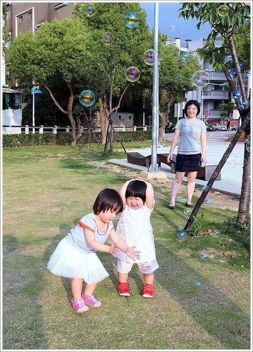 ▼小朋友噴完防蚊液之後,馬上鳥獸散開始奔跑,吹泡泡的吹泡泡,有的忙著追泡泡有著忙著東奔西跑,整個公園都是遛小孩的好地方XD