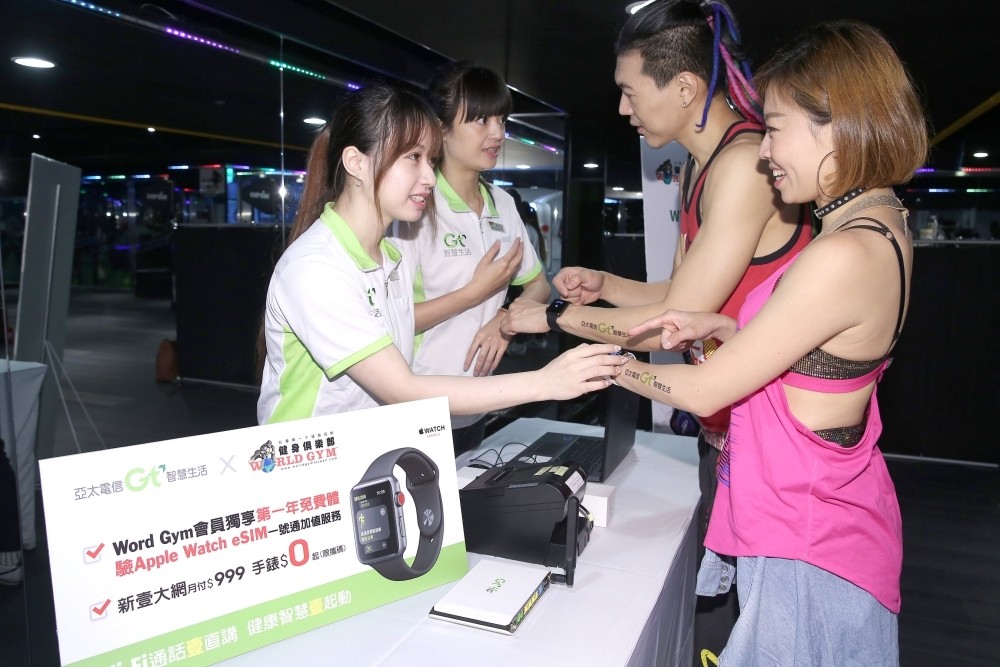 根據體育署最新統計數字,國內運動人口已超過85%,亞太電信Gt智慧生活此次引進Apple Watch Series 3(GPS + Cellular),為了讓喜愛運動的消費者,都能夠透過穿戴裝置,輕鬆掌握自我身體的各項資訊;此次特與擁有30萬會員,全台56據點的國內最大健身品牌「World Gym世界健身俱樂部」合作,與國人攜手打造健康智慧生活。