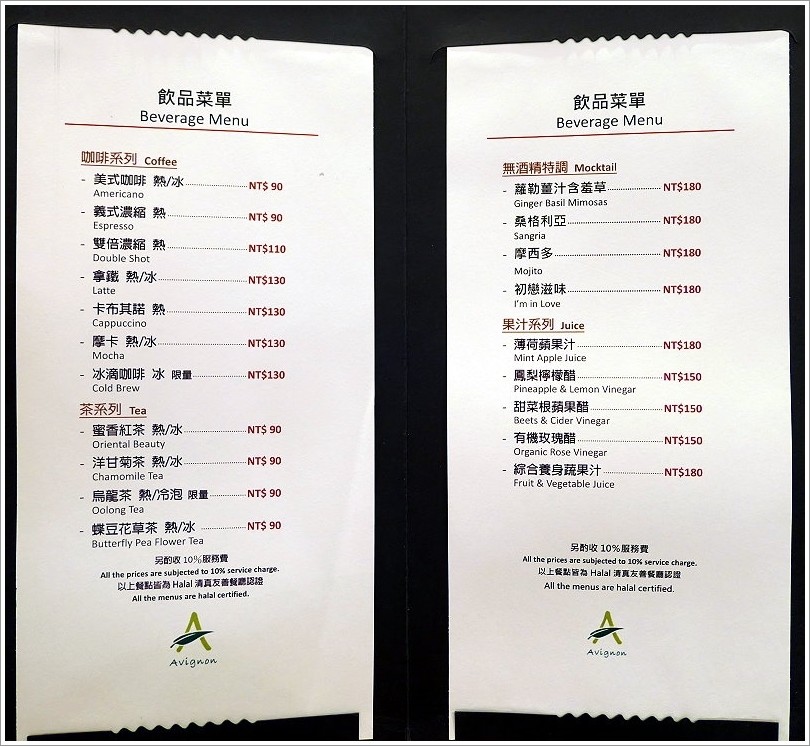 ▼另外還有各式各樣的艾維農套餐,價位從480~780元不等,且餐點都有經過清真友善餐廳認證,所以都可以放心享用唷!