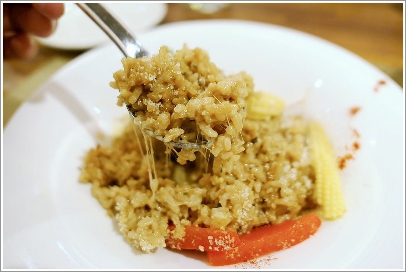 ▼最特別的是燉飯有加入巴薩米克醋,剛開始還覺得會不會不搭嘎,沒想到吃起來不僅有濃濃的野菇香氣,搭配巴薩米克醋意外的提味合拍,讓我們好驚喜!而且米粒煮得相當有口感,吸附滿滿醬料精華,更是讓人忍不住一口接一口停不下來!