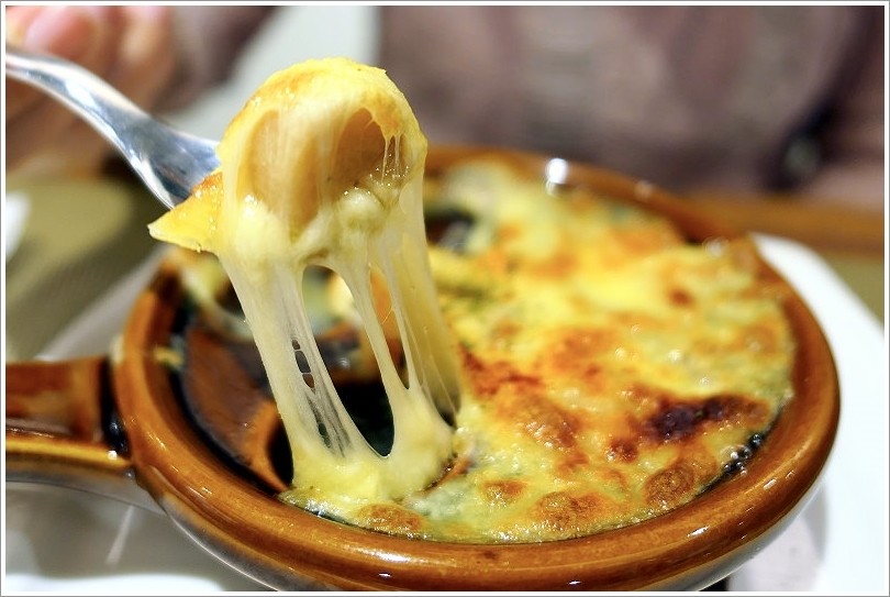 ▼法式焗三鮮,我們選的是莫札瑞拉起司,採用的是法式焗烤田螺的概念,只差別在裡頭搭配的是杏鮑菇、筊白筍、洋菇!上頭的起司給得相當大器,吃起來香氣十足又有濃濃的起司牽絲,加上裡頭鮮嫩多汁的杏鮑菇真是絕配!