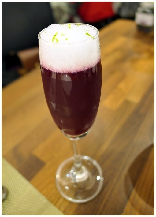 ▼甜菜根蘋果醋,採用高腳杯盛裝,感覺更加優雅!喝起來帶點微微酸香甜美,一點點甜菜根的特殊氣味,清甜順口!
