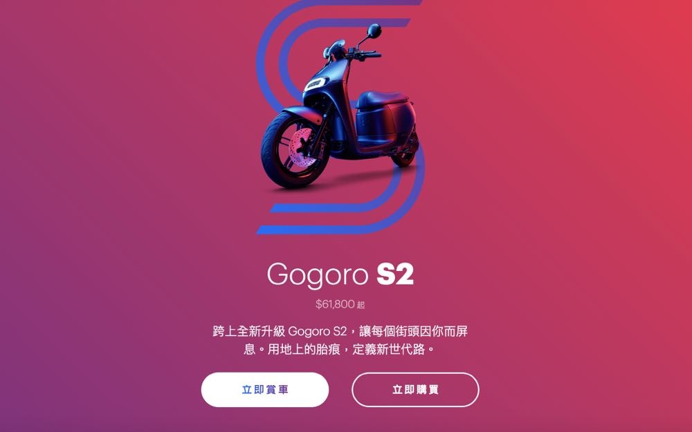 風波不斷的 Gogoro 在今天 (29 日) 宣布推出更新一代車款 – Gogoro S2,將性能與配備全面升級,包括全面升級的懸吊與煞車系統、對向四活塞輻射卡鉗、加大口徑前懸吊系統、加大前碟盤、動力輸出優化至 10.28 匹、0-50km/h 加速僅需 3.9 秒,售價為 NT$61,800 元起,還推出購車就有一年每月 699 元騎到飽的電池租賃服務方案!