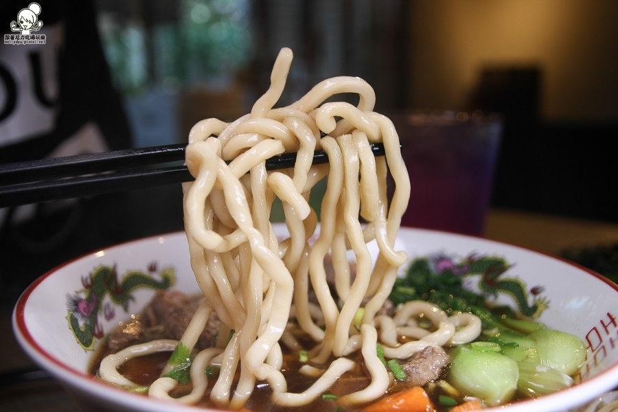 使用手工製作的粗拉麵,帶有Q彈咬勁,越吃越過癮
