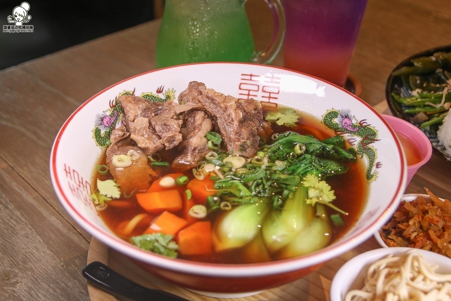 份量十足的牛肉麵,使用的是牛肋再配上手工拉麵麵條