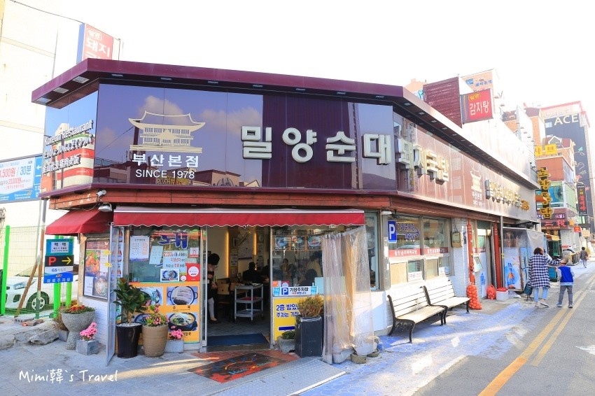 豬肉湯飯是韓國釜山的國民美食,尤其是西面站吃到的松亭三代豬肉湯飯給我留下很不錯的印象。所以在海雲台又找了這家密陽血腸豬肉湯飯 밀양순대돼지국밥,它就在地鐵海雲台站出口大約3分鐘,相當好找到。