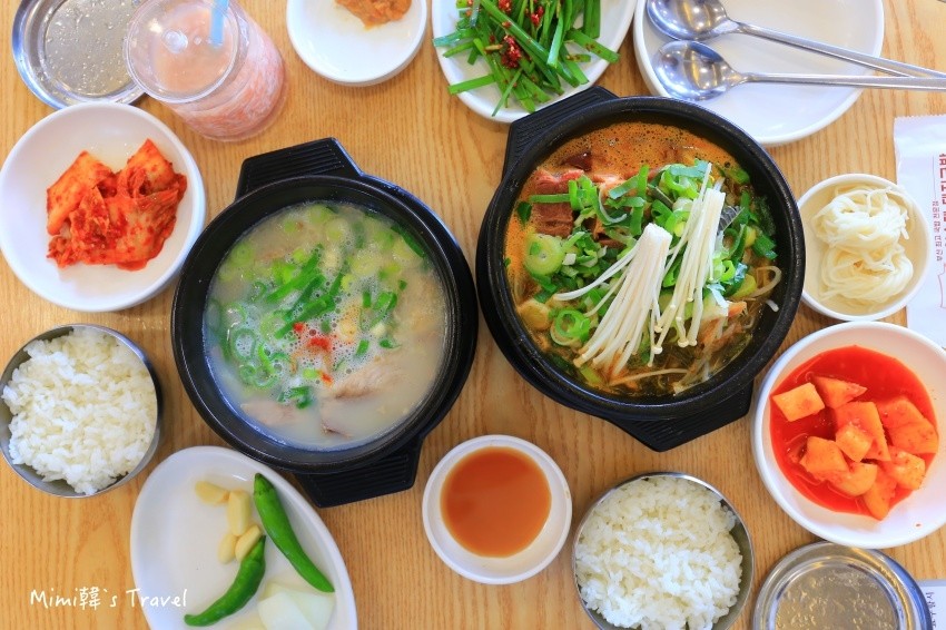 從外觀就感覺好像很多報章雜誌媒體都來採訪過,他們家的豬肉飯湯我覺得湯頭還算香醇,但這天豬肉有點腥味,把韭菜、蝦醬都放進去才比較好吃。另外又點一個單人份的土豆排骨湯,口味不像首爾東廟站24小時土豆排骨湯這麼好吃,但我們還是全部吃光光啦~