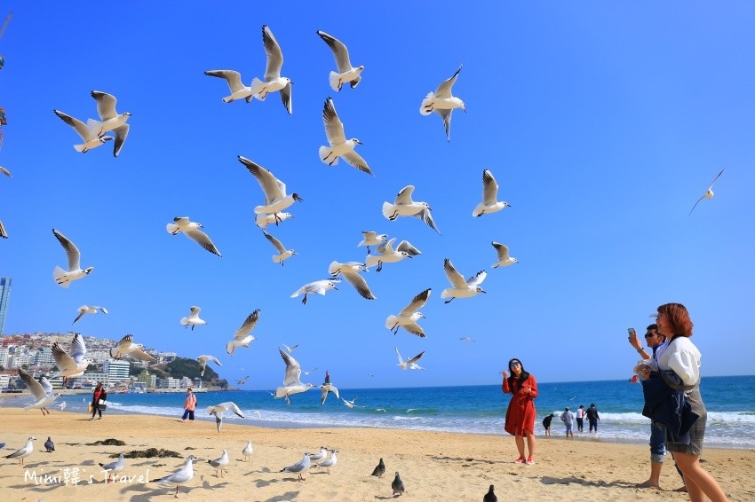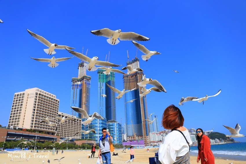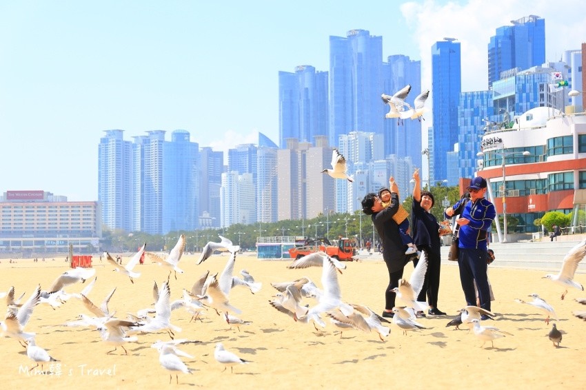 接著繼續往海雲台海水浴場的方向走,又美又乾淨又有超多海鷗在此聚集的海灘,是來釜山海雲台不可也不會錯過的浪漫景點。如果想要和海鷗來場親密接觸,記得隨便找家便利商店買包蝦味先之類的餅乾,我也不知道為何這裡的海鷗會愛蝦味先 ?