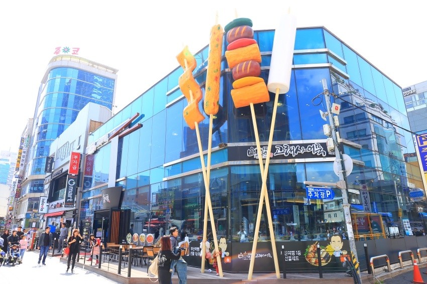 尤其是當熱門的韓國綜藝節目「超人回來了」也在這裡拍攝,更是變成海雲台的超人氣美食,不只是觀光客愛來,就連韓國人也是很多,門口巨大的魚糕招牌,幾乎是一走出海雲台地鐵站就會看到,超醒目的 ?
