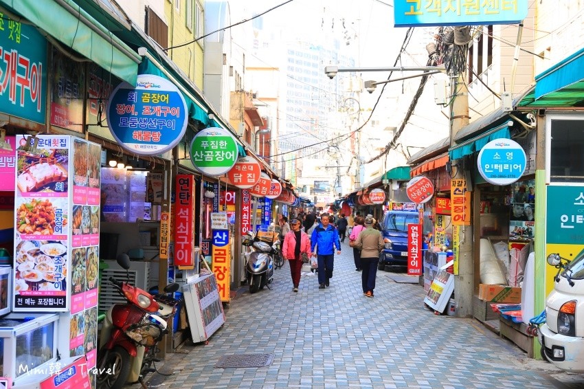 海雲台市場就像是這兒的傳統市場,市場的入口就在海水浴場與地鐵站中間,街道裡有許多海產店、料理店可以覓食。姐雖然不愛買,但每到一個地方還是挺喜歡到當地的傳統市場走走,感受不同的民俗風情~