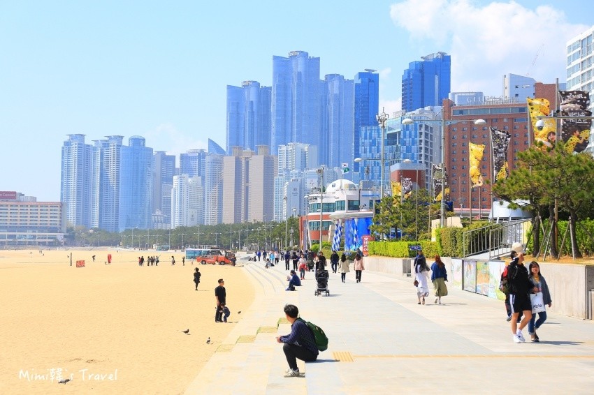 這天天氣啵棒,海風吹起來格外舒心,漂亮的海景加上附近的現代高樓所構築成的景色,是海雲台明信片中時常出現的畫面。