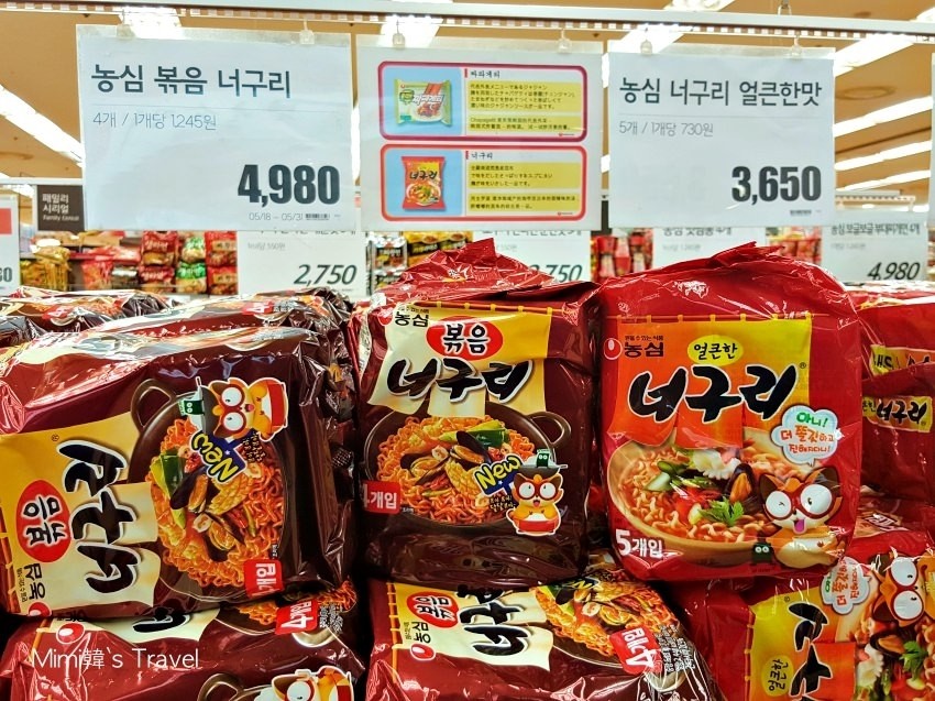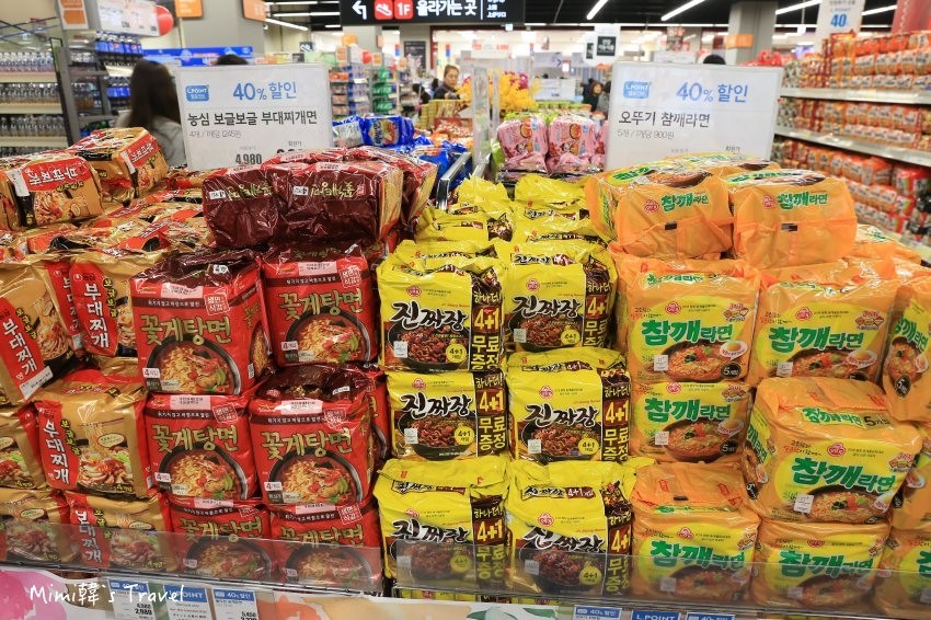 韓國泡麵也是大家掃貨的重點區域,選擇真的是多到爆炸,讓人眼花撩亂,超想全部都搬回去吃一輪看看。