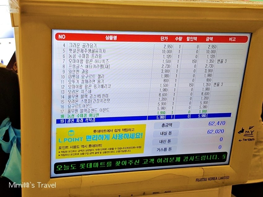 走進釜山樂天超市就會發現,它其實就是像家樂福、愛買的大賣場,舉凡零食泡麵、咖啡飲料、蔬菜水果、日常生活消耗品等都能在這裡買到,雖然說不能保證每樣東西都是最便宜,但就像台灣大賣場一樣,這裡的商品比較起來還是相對便宜,再加上貨色齊全,而且櫃台就能退稅+打包,給了來韓國旅遊的我們不少方便。