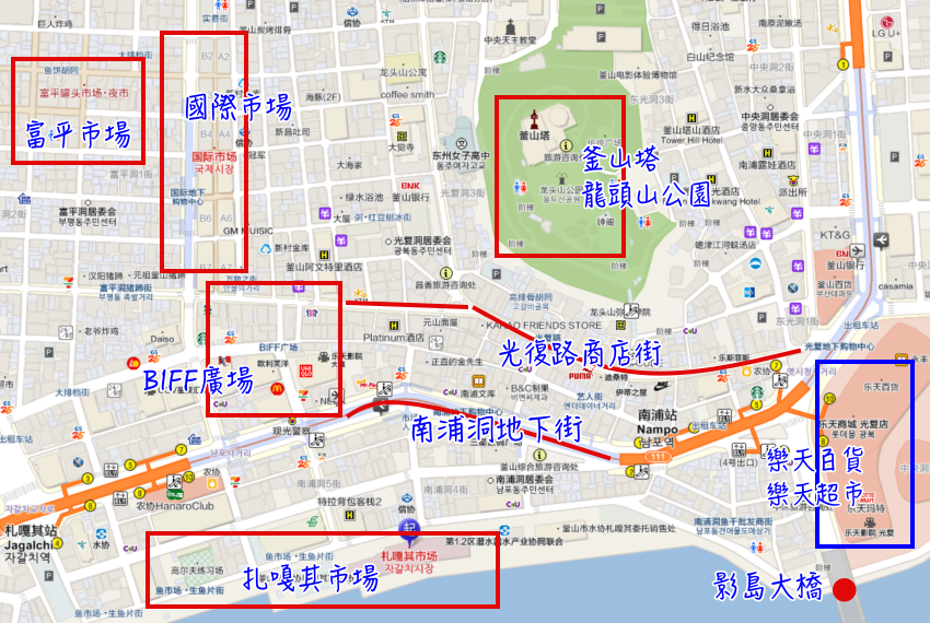 這趟來釜山自由行的第二天,我們早上就衝來釜山最熱鬧的南浦洞札嘎其附近玩,把樂天超市Lotte Mart當成最後一站,門口就是地鐵南浦站,買完剛好回飯店睡覺,反正這趟三個晚上都住在西面站的聖三一飯店 Trinity Hotel查房價),不用搬來搬去很方便。