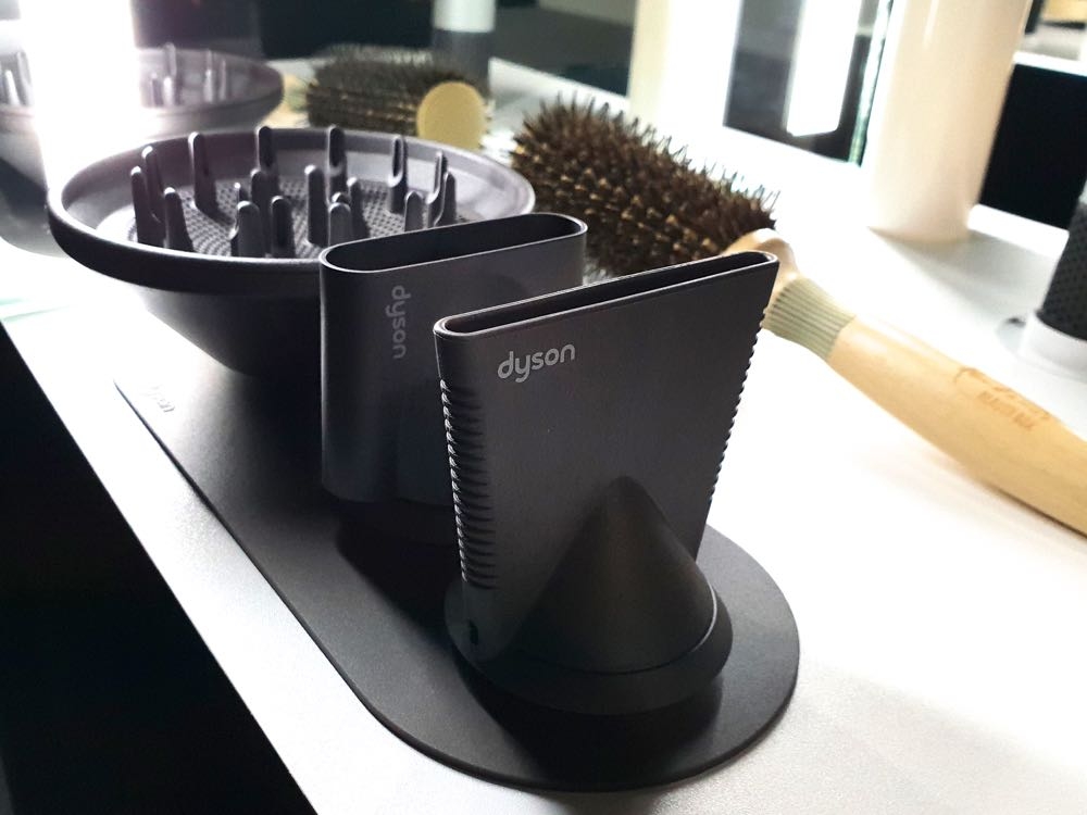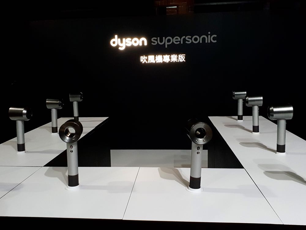Dyson Supersonic 專業版吹風機的外型一改消費者家用的磨砂材質,手柄部分使用更具耐磨的烤漆材質。吹嘴部分也在每一個吹嘴上增加到 24 個磁鐵,來讓設計師使用時避免因為反覆使用而掉落。