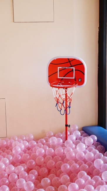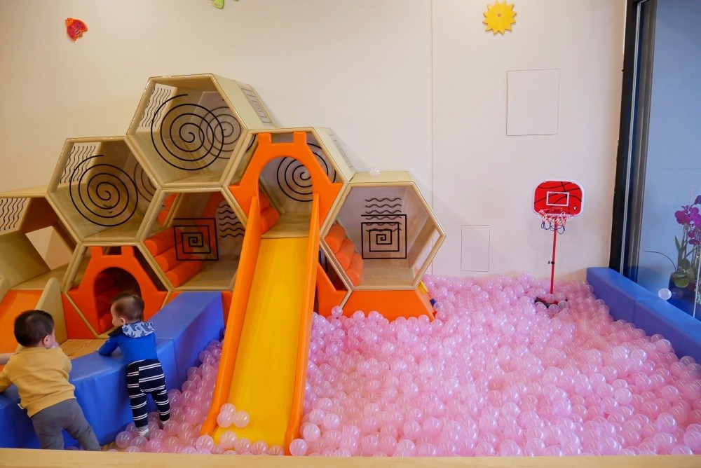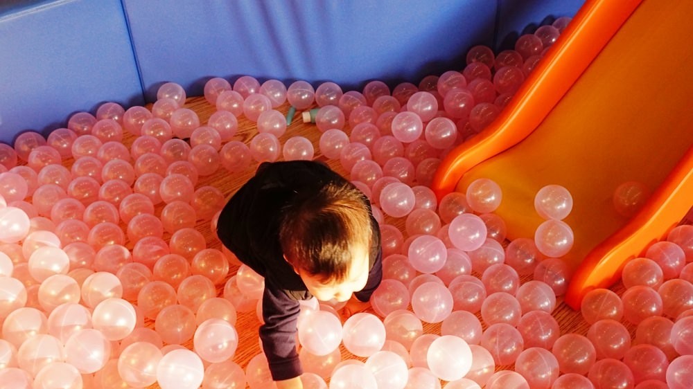 共好最引人注意的就是這個粉紅色的夢幻球池!超級粉嫩可愛,每次去都被療癒。相信大家都很在意衛生消毒的問題,除了再進去遊戲區前孩子大人都要先消毒之外,玩具一天會消毒兩次,每週一次大掃除,球池會把球全部移開之後,消毒裡面的空間。然後用消毒水一顆一顆把三千顆球擦拭過再放回球池。