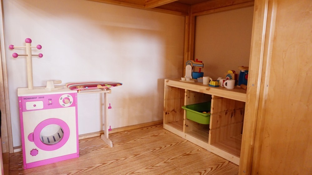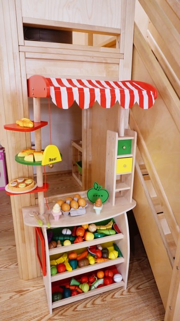 這款小木屋我第一次看到,看了共好的粉絲專頁才知道這是他們特別與 德國HABA 訂製的小木屋,下單製作了三個月空運來到竹北的共好,保證無毒無甲醛,全實木製作,而且邊緣都是導圓角,小孩玩耍很安全,十分耐重,大人也可以上去沒有問題。