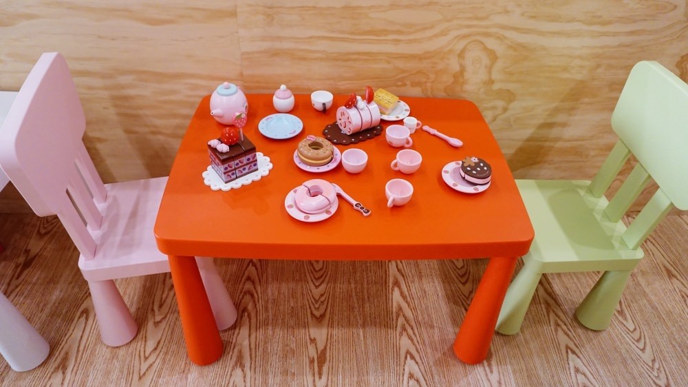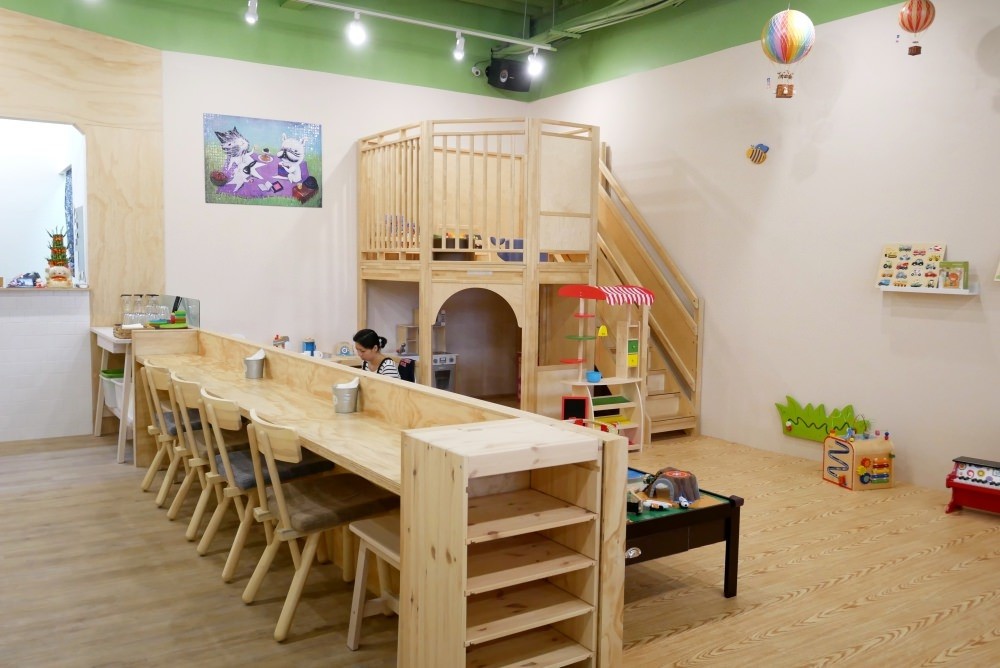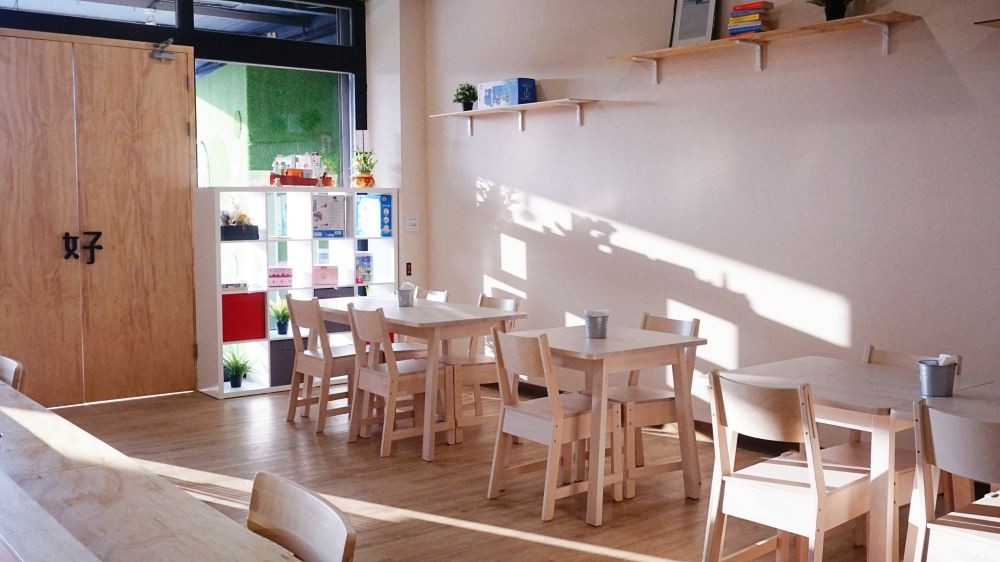 整體空間質感很好,很舒服。木地板、木桌椅,而且桌椅大多是「圓角」可以降低孩子撞傷的機率,真的很友善。