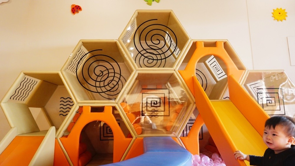 阿福每次來都會很開心地爬溜滑梯、樓梯,從球池外面翻進去,再從裡面翻出來,是個超級放電的好地方。
