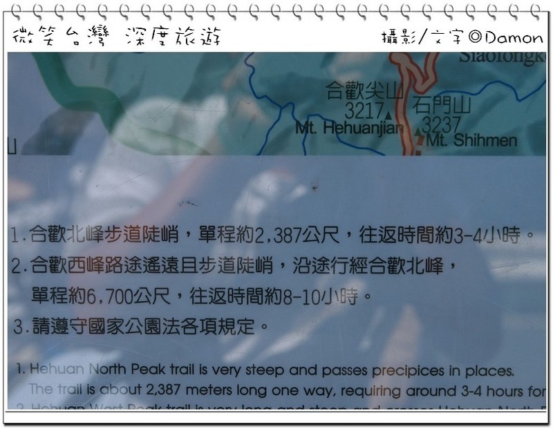 百岳-合歡北峰標高3422公尺,步道陡峭,往返距離約4,7km,需時4小時的路程,這次肉魯準備帶領朋友們挑戰百岳-合歡北峰,話說一看到是艱難的行程,人數馬上遞減成9個人,哈..開玩笑的!肉魯每次來到合歡山絕對不會滿足於合歡公路的壯麗景觀而已,一定要爬座山岳來活動筋骨,合歡主峰、合歡東峰、合歡北峰、石門山、合歡尖山,歷經艱辛的過程,攻頂後才是微笑台灣深度旅遊的開端,且看我們的合歡北峰攻頂全記錄之漫漫攻頂路!