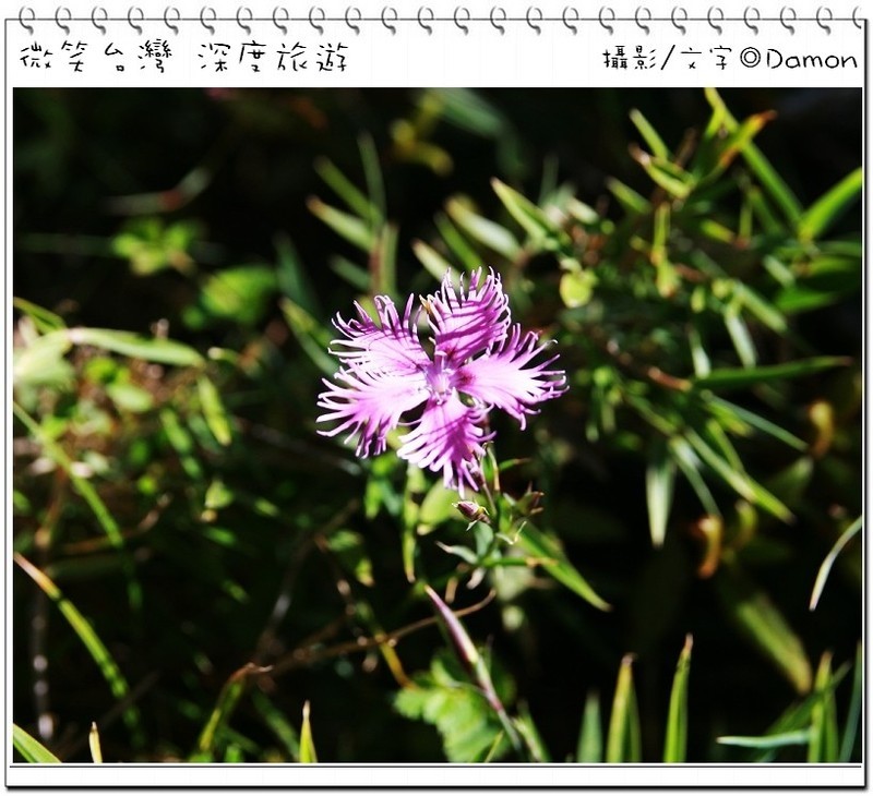 ▲((35F網友提供:此紫花為玉山石竹)),好漂亮的名稱,肉魯不只是爬山,也觀賞路邊的植物,雖然不知道這是什麼花兒,但是好美,真的是張牙『五』爪。