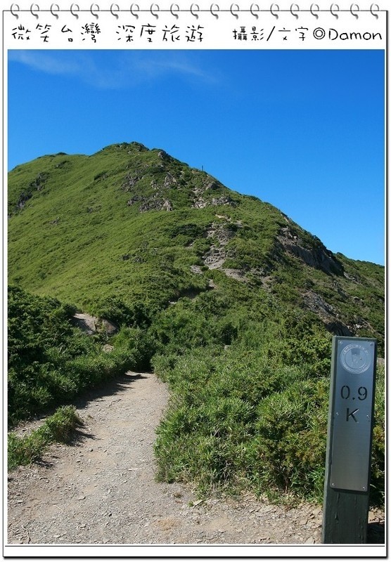 ▲0.9k,終於我們快要走到一半了,中間上方那邊有一根細細的柱子,那就是1.0k,我們到那兒再決定誰要放棄吧!對面那個山頭也是假山頂,哈哈!