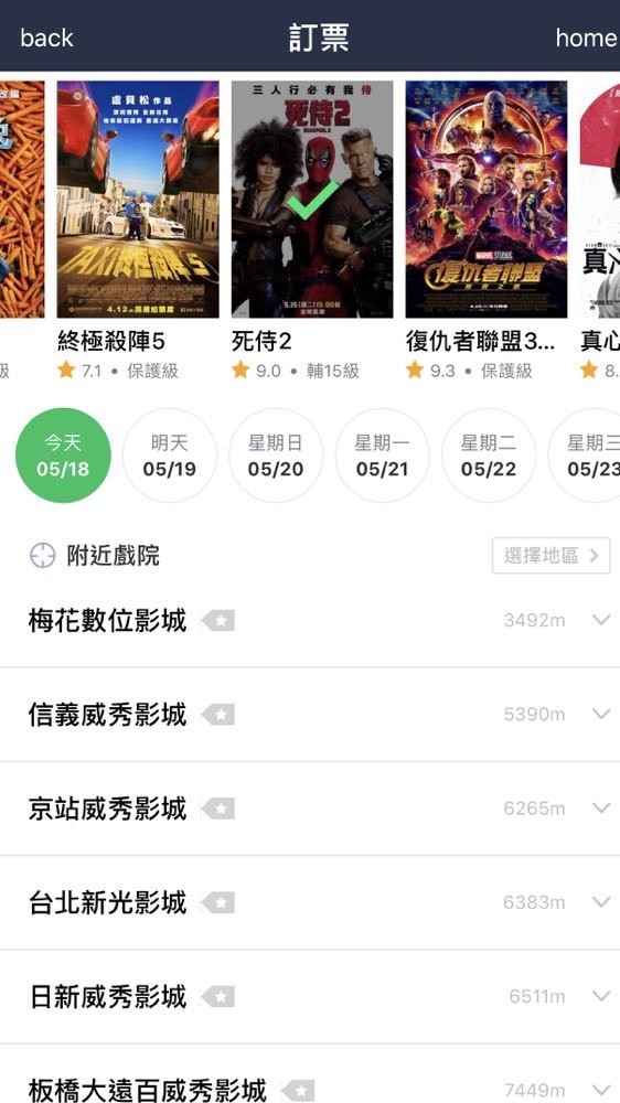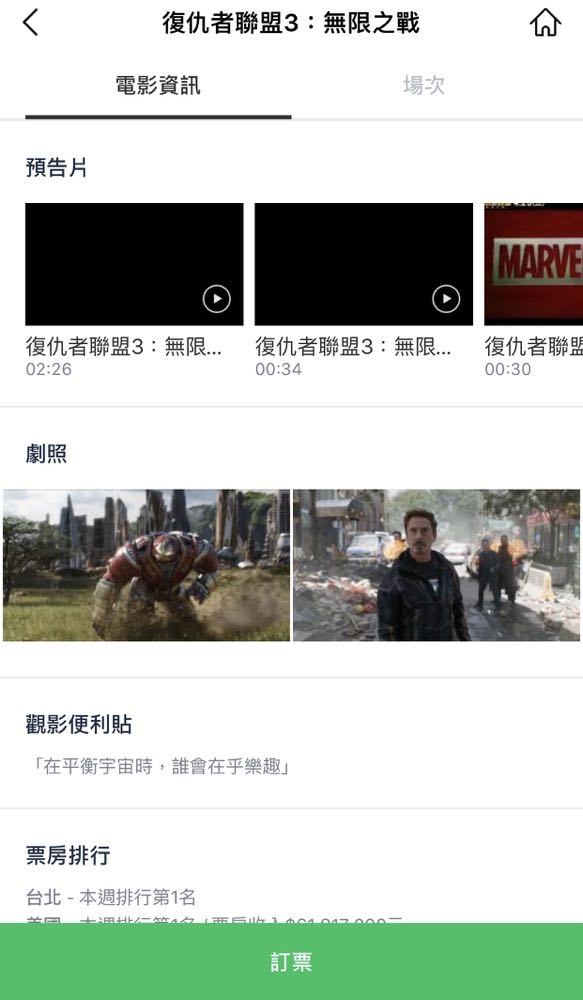 LINE TODAY 是與大型電影訂票平台-「ez 訂」合作,用戶如果在 LINE TODAY 的「電影」中看見有興趣的上映中電影,點進去便能觀賞電影預告片、閱讀相關電影的文章及評價,甚至會依據我們所在位置來尋找附近的電影院,並且進而選擇想要看的場次、座位來輕鬆完成訂票。