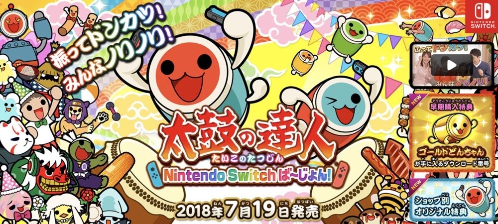曾在 3 月初 Nintendo Direct 中透露太鼓達人音樂節奏遊戲將會登上 Nintendo Switch 的 Nintendo,現在終於確定會在 7 月 19 日與日本同步發售。既然是太鼓達人的遊戲,Swtich 上的 Joy-Con 就很自然地成為遊戲中的鼓棒,並全方位支援 TV 模式/桌上模式/手提模式三種,讓玩家搭配收錄的《超級瑪利歐 奧德賽》主題曲「Jump Up, Super Star! Short Version」、《漆彈大作戰 2》、《星之卡比》組曲「Kirby’s Return to Dream Land」、《妖怪手錶》主題曲「妖怪體操第一」、航海王主題曲「We Are!」等超過 70 首以上豐富種類的知名樂曲,日後還會有越來越多收錄曲目會陸續公開!