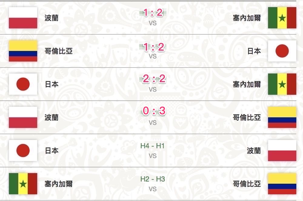 2018 年世界杯足球賽將於 2018 年 6 月 14 日至 7 月 15 日在俄羅斯舉行,共有 32 支球隊,分成八組進行小組對戰,其中 H 組的隊伍分別有波蘭、塞內加爾、哥倫比亞以及日本。