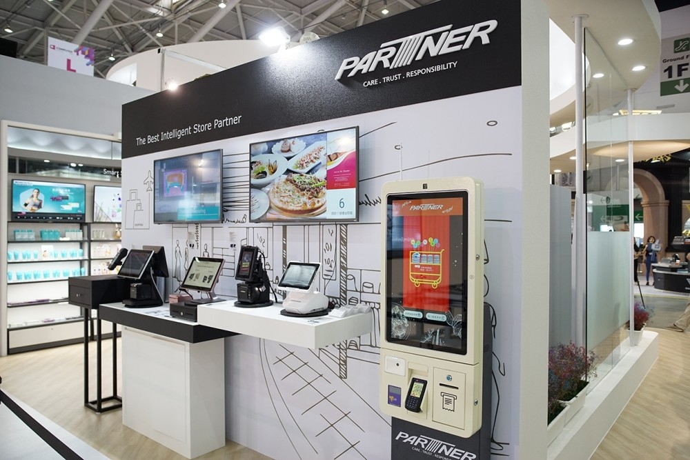 自助服務為智慧無人商店的一大亮點,佳世達此次的智慧無人商店解決方案,以手機或平板快速建檔做人臉建檔上傳至會員系統,與門禁與結帳系統連結。結帳時只需把商品放置在平台上,藉由RFID系統讀取商品資訊對應會員人臉即可結帳,不需要一樣樣商品自己掃碼,大幅節省結帳時間。另外,更結合多種支付方式供選擇自行結帳,不再需仰賴店員服務,大幅降低人事成本。而和拍檔科技合作的代收代付Kiosk,可以繳水電、收送送洗衣物、購買票卷儲值點數,結合多元支付模組如Line pay或信用卡等付款,不必再印出票卷至櫃檯結帳,亦在節省櫃台作業人力。