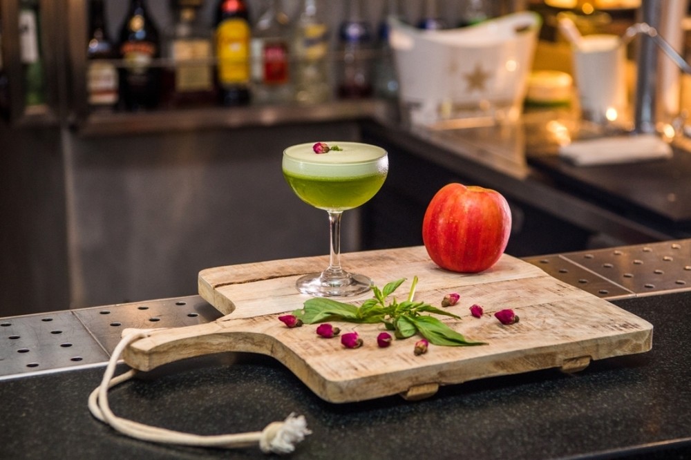 「love in the jungle」:此款酒是經由citizenM Taipei全體大使,結合創意與熟練的調酒技術,經過內部競選出來的冠軍調酒,別具特色。此杯調酒就如它的名稱一樣,讓人有種想奔跑在叢林的感覺,最具台灣香料的代表,並且也是媽媽在做菜中不可或缺的一種材料-九層塔,調酒師用完美的調製比例,讓新鮮蘋果的香甜與九層塔完美的融合在蘭姆酒中。用”萬綠叢中一點紅”來形容此杯調酒的外觀再適合不過了,九層塔讓此杯調酒呈現叢林般的綠,最後放上一顆乾燥的玫瑰花苞,不但能點綴整杯調酒,還讓此杯調酒充滿了玫瑰花的香氣!
